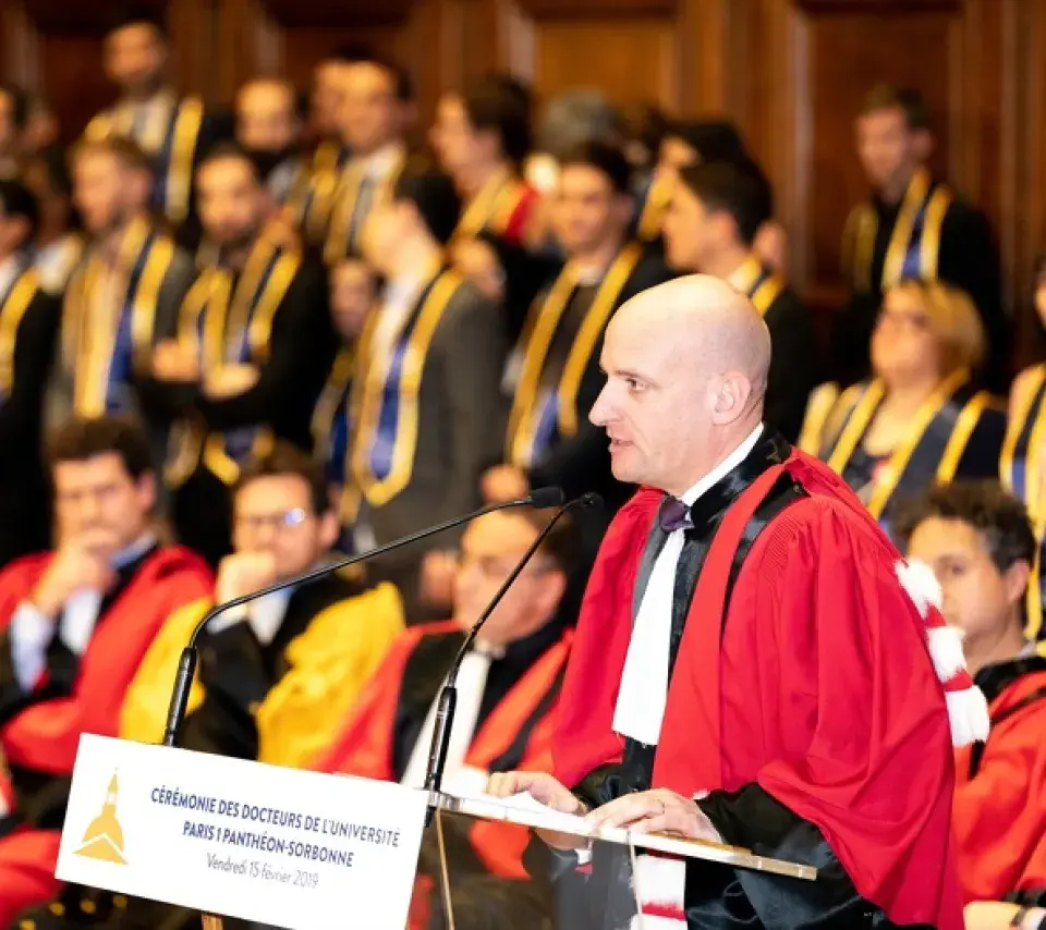 Chaque année, un parrain est désigné pour la cérémonie des docteurs. Ce dernier a été docteur à l’université Paris 1 Panthéon-Sorbonne et prend le rôle de témoin de ces 8 années d’études et de recherche. Le parrain de la cérémonie revient sur ses années d’études et partage son expérience avec les docteurs tout juste diplômés.